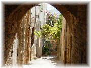 | ギャラリーがたくさんあって、それらを眺めるのも楽しいです。 | 博物館もあり、看板も石でできています。本当にここは石、石、石の世界。 | 石の他はドアに無垢の木を見かけるだけで、人工加工建材は一切ありません。 | 壁も道路もみんな石です。せっせと積んだのですね。 |