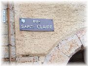 | 旧市街地でも上のほうで静かなエリアの住宅街。とても良い感じでした。 | 駐車場でしょうか。扉の色ですが、フランス人は決して奇抜な色は使いません。決して新しくなく、高価な作りでもないのに、何故こんなに上品なんだろう。 | 壁という壁にはツルバラやブーゲンビリアが絡まっています。シンプルな美しさ! | こんな小さな通りにも通りの名前が表示されております。「セント・クレア通り」 |