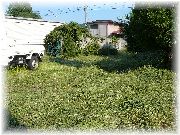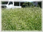 | 1ヶ月以上経っておりますのでご覧のとおり草ボウボウ。今日は3時間しか作業時間がありませんので、急がなければなりません。 | 敷地内はほとんどこんな感じ。軽トラが隠れてしまいます。 | やっとのことで草刈終了!軽トラはタイヤまで見えます。 | この夏は特に暑かったせいか、草丈が長いように感じました。いや、こんなもんかな。とにかく車山の庭とは全く異なります。さあ、急いで帰らねば! |