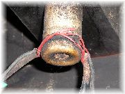 | 今日は碍子配線を外します。今は壁の中に電気配線しますが、当時はこのように配線がむき出しでした。もちろん被膜はされています。 | 配線は大概高いところにありますので作業し難いです。上ばかり見ているので肩が懲ります。 | 中にはこんなその辺の有り合わせの材料で配線を碍子に縛ってありました。適当です。 | 壁を貫通する箇所や配線同士が接触しやすいところなどには、このような碍子製のチューブが使われておりました。初めて見ました。 |